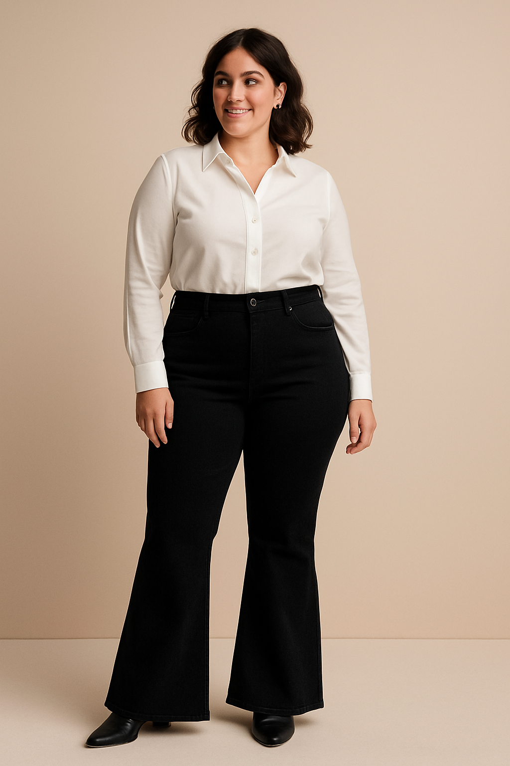 El Jean Bota Campana Stretch combina estructura y flexibilidad para acompañarte con seguridad en tu día a día. Su corte ajustado hasta la rodilla, que se abre de forma elegante en la bota, crea una silueta estilizada y fluida que favorece cada tipo de cuerpo.