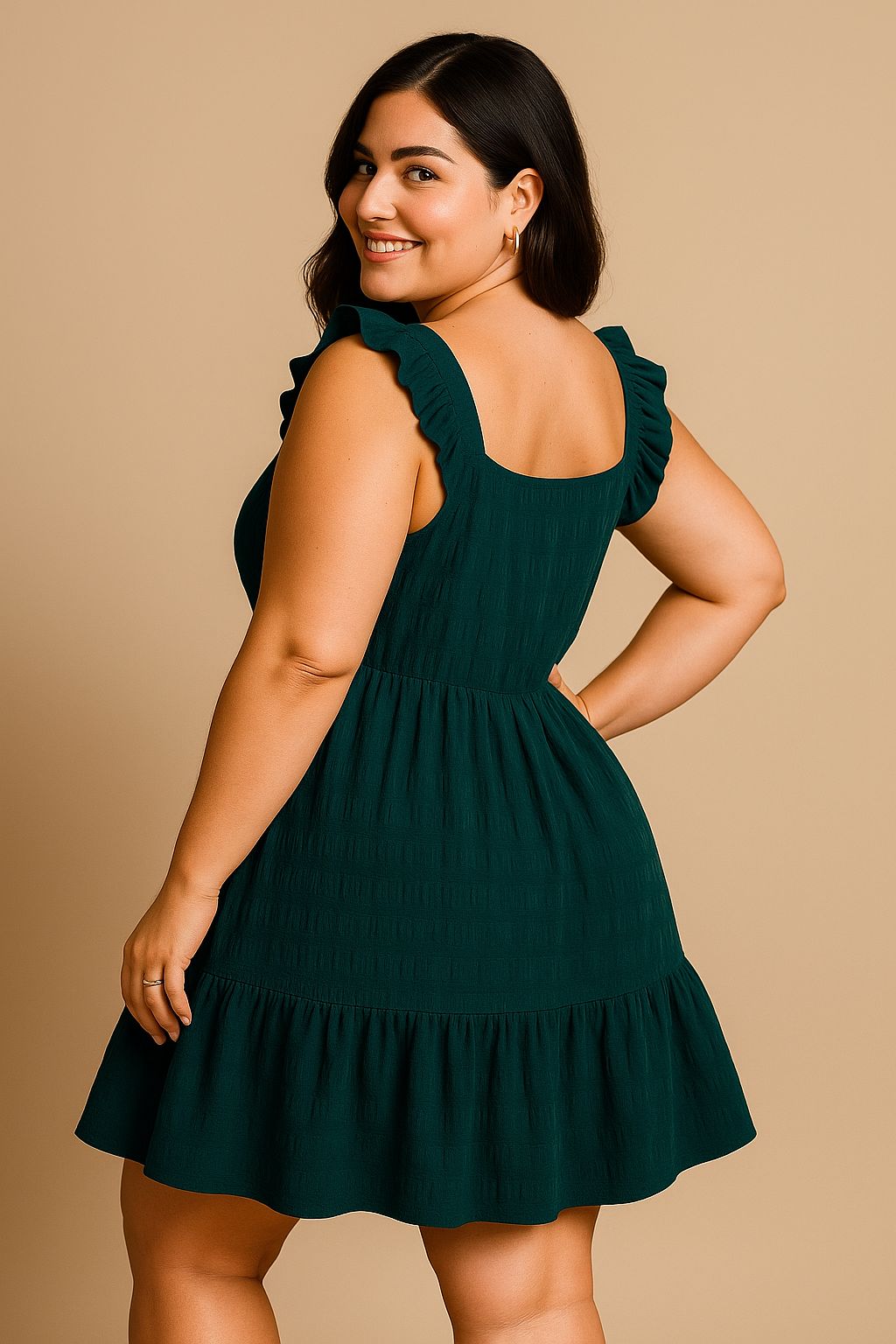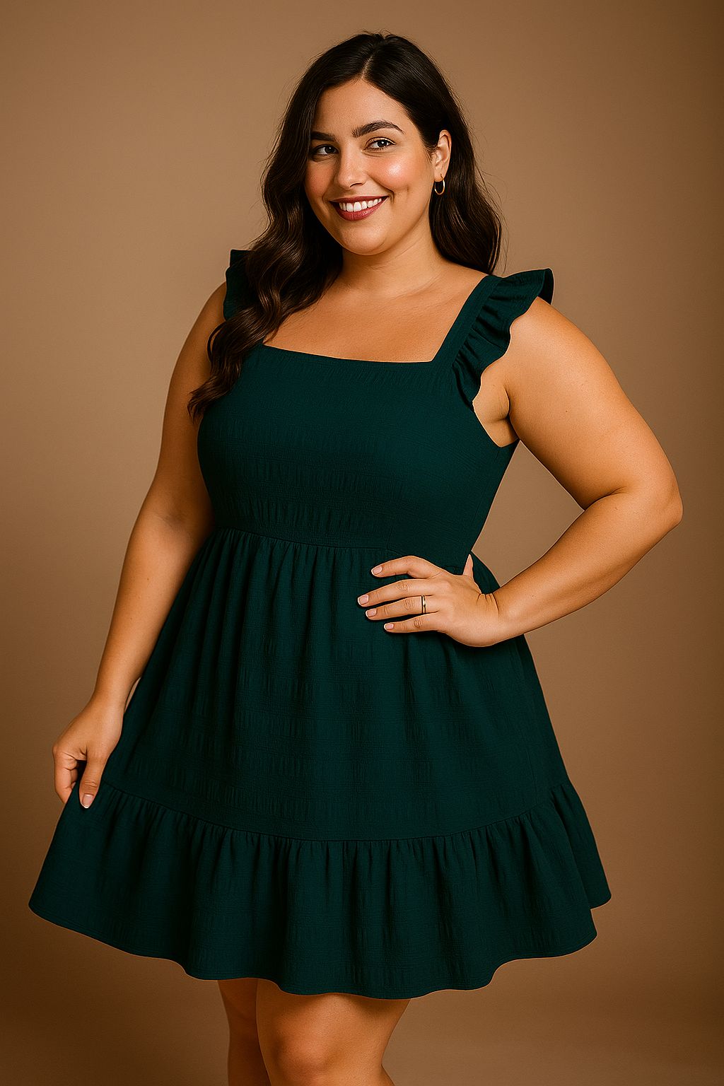 Vestido corte princesa plus size, largo antes de la rodilla, creado para celebrar tus curvas con gracia y confianza. Su tela ligera acompaña cada movimiento, envolviéndote en frescura y libertad. Perfecto para brillar en cualquier ocasión con el estilo alegre y empoderador.